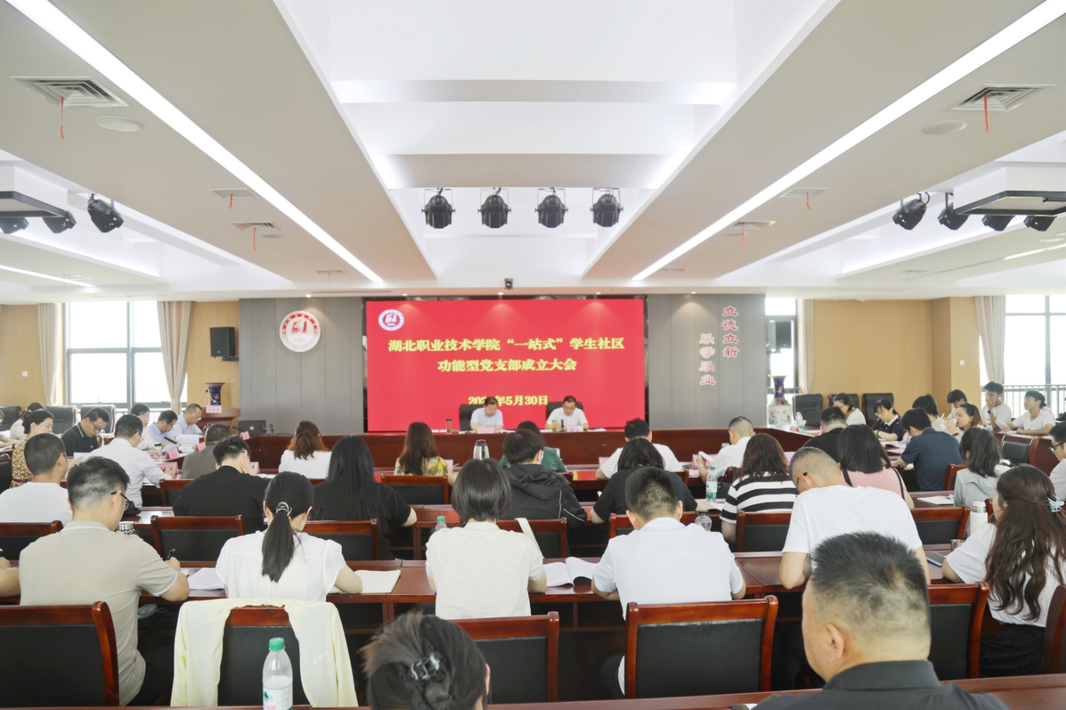 (本网讯祝非凡程曙文)为加强党对“一站式”学生社区的全面领导,深入贯彻落实党建引领学生社区建设的总体要求,5月30日下午,我校“一站式”学生社区功能型党支部成立大会在图新大楼601会议室举行。学校党委副书记王益贤,党委委员、副校长梅重出席活动。党委组织部、党委宣传部、党委学生工作部、党委保卫部、校园建设与后勤保障处、团委负责人,各二级学院分管学生工作负责人、黄琼“心育”国家级名师工作室、胡敏校级名师工作室及首批8个校级辅导员工作室以及专兼辅导员和学生入党积极分子代表参会。会议由党委委员、副校长梅重主持。