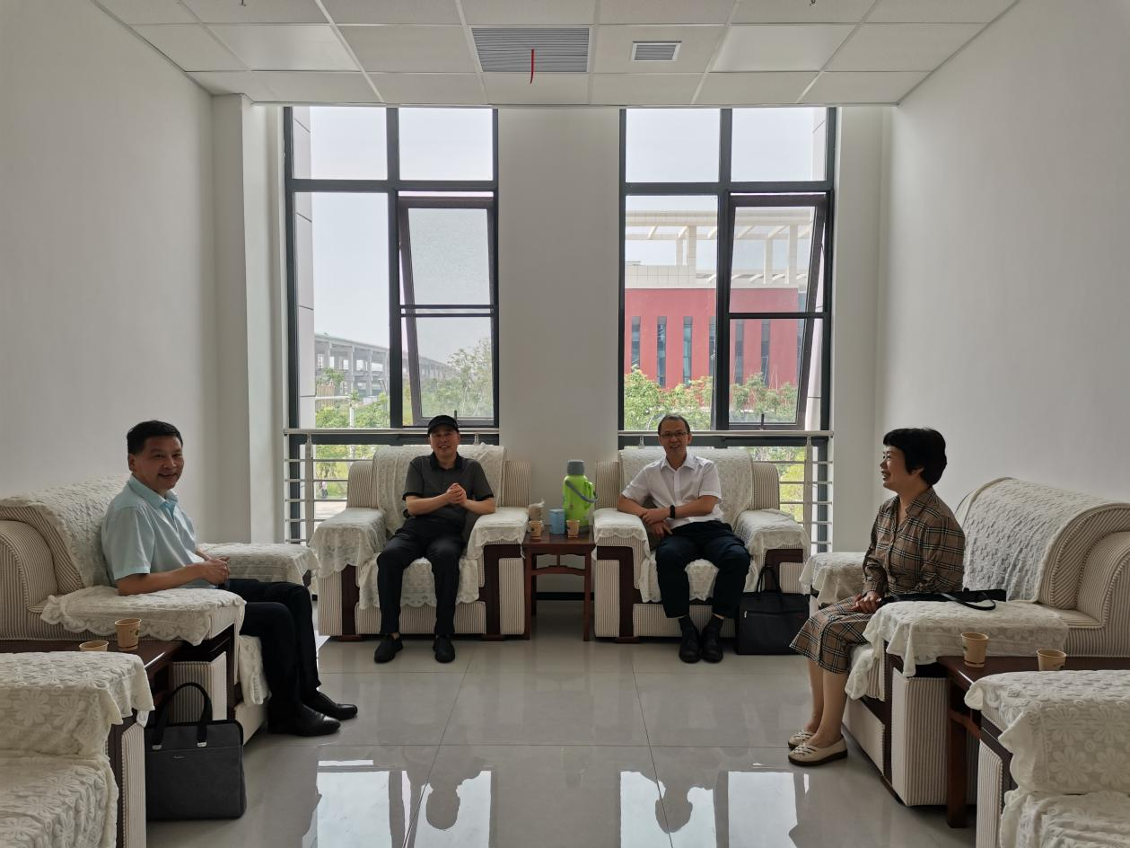 (本网讯张子凤)6月6日,我校袁胜华副校长带领图书档案馆4人团队,前往黄冈职业技术学院图书馆开展专题调研。黄冈职业技术学院副校长周常青、图书馆馆长杨勇等接待袁胜华一行。