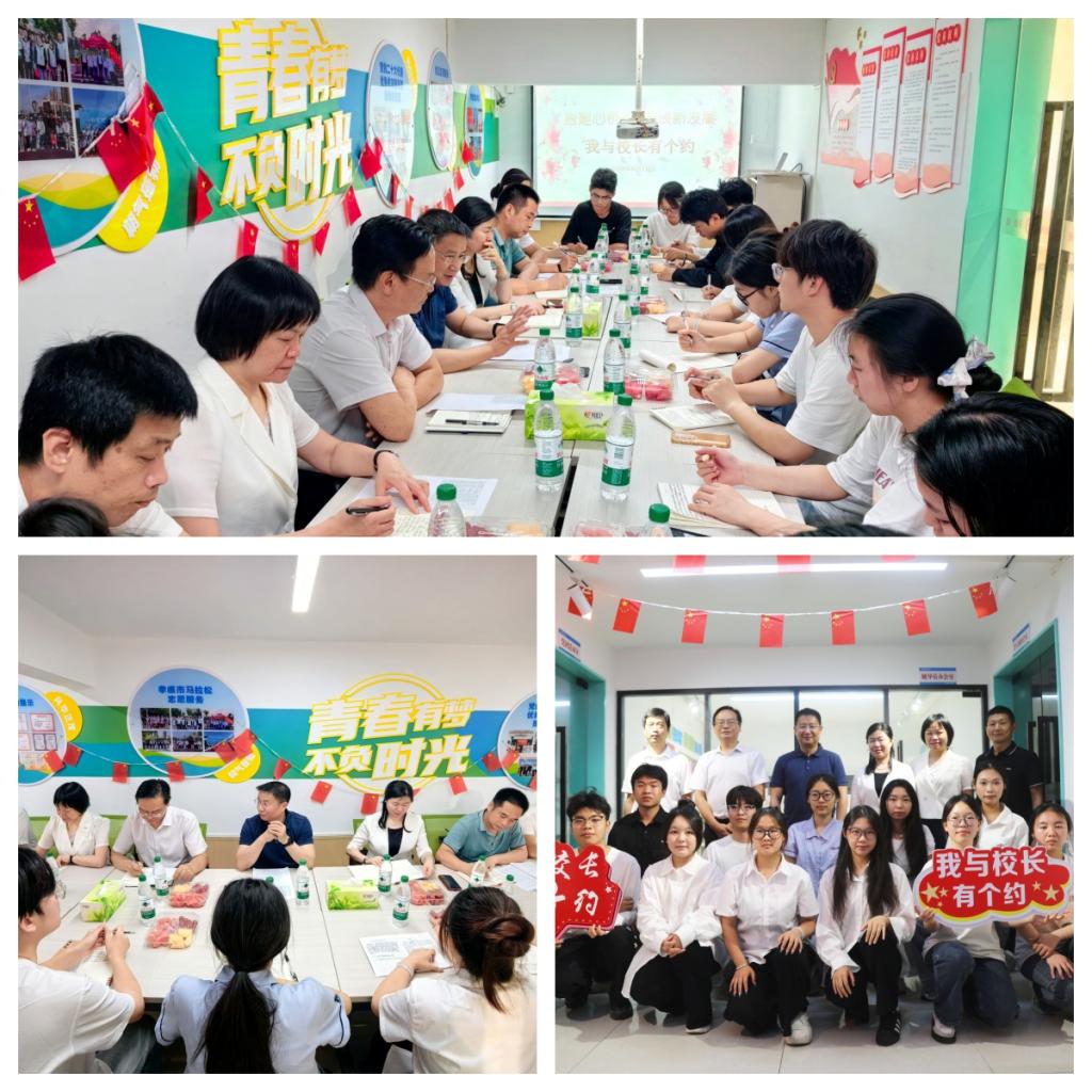 “我和校长有个约”学生座谈会在热烈的掌声中拉开序幕。校长郭沙以及学工部、招就处、护理学院、社区功能型党支部负责人等与学生代表围坐畅谈。主要围绕专业技能提升、职业发展规划、实习就业方向等内容进行深入交流。同学们就个人成长与困惑、收获与迷茫等热点问题踊跃向郭沙校长提问。郭沙校长耐心回应、细心解答,现场气氛热烈,暖意融融,深情寄语青年大学生:作为新时代好青年要做到不要把欲望当志气,不要把逃避当解脱,面对成长中的问题和挑战,要磨炼心智,勇于面对,成就美好未来。