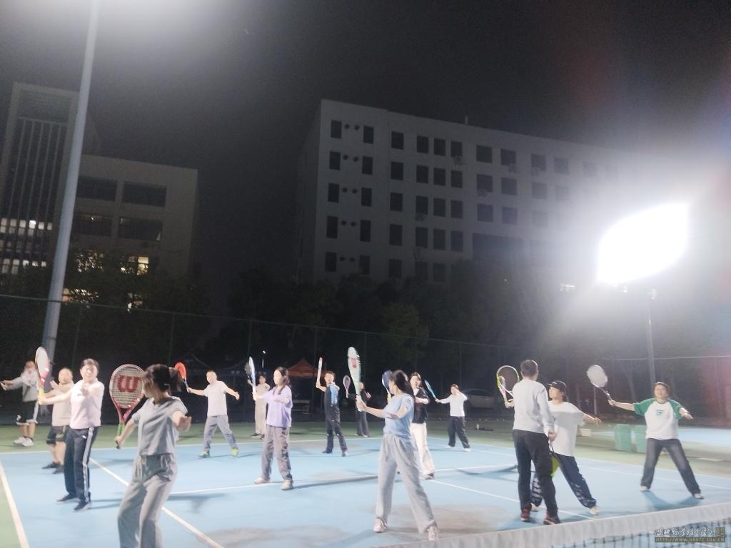 网球场上,教职工们体验着这项优雅运动的独特魅力。从握拍姿势到击球技巧,教练耐心指导每个细节。网球运动不仅能锻炼爆发力和耐力,更能培养专注力与策略思维。
