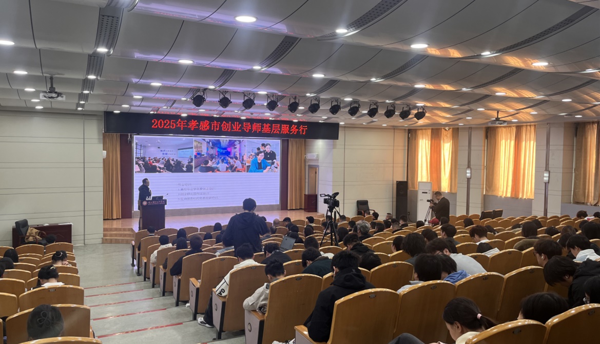 (本网讯黄灿)10月22日,由孝感市人力资源和社会保障局主办,孝感市劳动就业管理局承办,我校协办的"2025年孝感市创业导师基层服务行——孝感市站"活动在西区学术报告厅举行。