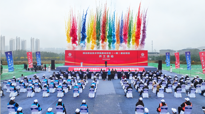 湖北澴川国投投资运营集团总经理张亮明代表施工单位发言。他表示,将把湖北职院奥体校区建设项目打造成阳光工程、精品工程、廉洁工程、标杆工程。同时以此为契机,与湖北职院在校企合作、人才培养、劳动就业和技术支持等方面加强合作,打造校企合作共赢的典范。