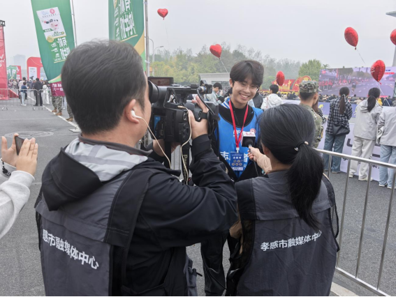 机电工程学院 刘作杰:马拉松的魅力在于全民参与的包容与热血—— 无论性别、年龄,即便行动不便的跑者,也能坐着轮椅在赛道上挥洒汗水、追逐热爱。作为一名宣传志愿者,我深深沉醉于这份独特的喜悦与荣耀。跑者们坚定的眼神、铿锵的步伐,如同璀璨星辰点亮了赛道的每一个角落。而手持相机的我,有幸成为他们追梦路上的同行者,用微笑传递力量,用鼓励注入温暖,见证每一份不放弃的感动。