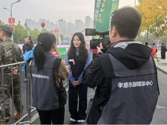 (本网讯 卢雅雪 冷玖玲)11月2日上午7:30,2025孝感马拉松赛在文化中心鸣枪开跑!来自五湖四海的12000名马拉松爱好者齐聚孝感,怀揣着满腔激情与坚韧毅力,如奔腾不息的彩色洪流,共同谱写了一曲关于运动、文化与城市活力的精彩乐章。而在这份精彩背后,离不开湖北职院志愿者们用辛勤与热忱筑牢的服务保障防线。