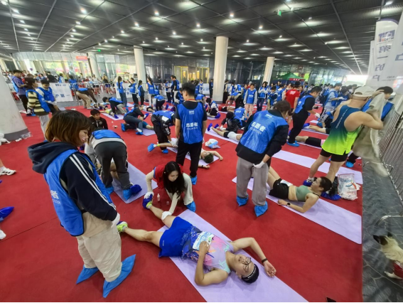 在长达数小时的志愿服务中,志愿者们始终精神抖擞、热情不减。赛前宣传接待岗的志愿者们动作娴熟地开箱、取水、斟倒,在为运动员快速补给运动饮料与饮用水的同时,用响亮的呐喊与真挚的掌声,为每一位前行者加油鼓劲;赛道医疗观察岗的志愿者们密切协作,目光专注地巡查赛道安全、维护现场秩序,为赛事的平稳推进保驾护航;赛后拉伸区的志愿者们早已备好冰水与按摩垫,用专业的手法为疲惫的跑者舒缓肌肉、放松身心,让每一份坚持都能收获温暖回响。