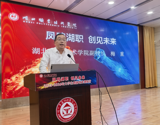 (本网讯 黄灿)11月5日下午,湖北职业技术学院2025—2026年 “凤鸣湖职,创见未来”大学生创新训练营开营仪式在西区学术报告厅举行。学校党委委员、副校长梅重,各教学院分管学工负责人、特邀嘉宾、导师团及200余名学员参会,共同启动系统化、实战化双创培养计划。活动由招生与就业创业指导处副处长王宇阳主持。