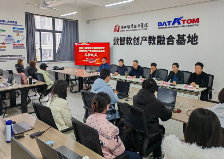 (本网讯 王亮)12月5日,湖北职业技术学院与中国电子系统技术有限公司、上海德拓信息技术股份有限公司联合举办的现场工程师实习项目开班暨数智软创产教融合实训基地启动仪式,在学校南校区天工楼举行。学校副校长胡昌杰、对外合作交流处处长王俊平、教务处副处长龚洪浪、信息工程学院院长潘志安,上海德拓信息技术股份有限公司副总裁韩欣、产教融合运营服务中心总经理李亚坤等出席仪式。2023级现场工程师班全体学生、校企教师代表、辅导员和班主任等参加活动。启动仪式由潘志安主持。