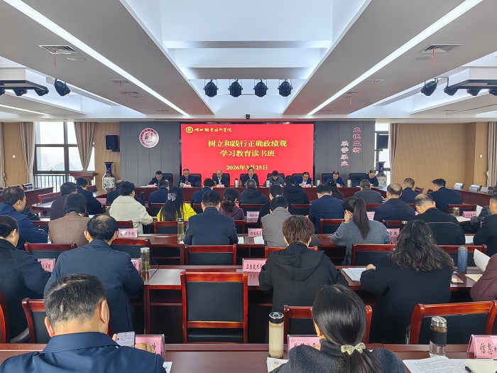 (本网讯 姜大年 陈灏)3月25日至27日,学校党委举办树立和践行正确政绩观学习教育读书班,采取集中领学、个人自学、专题辅导和交流研讨相结合的方式,深入学习领会习近平总书记关于树立和践行正确政绩观的重要论述和地方工作期间坚持正确政绩观生动实践。校领导围绕“政绩为谁而树、树什么样的政绩、靠什么树政绩”谈认识体会,各二级单位负责人围绕“树立和践行正确政绩观,扎实推进强校有我”交流发言。党委书记郭国文主持交流会并讲话。全体在校校领导、各单位党政主要负责人参加学习。
