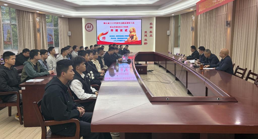 (本网讯 汪向东 曹艺)4月8日下午,湖北省2026年自主就业退役士兵职业技能培训示范班开班。孝感市退役军人事务局副局长陈小钢、就业创业科科长万进,学校党委委员、副校长杨立明,继续教育学院、机电工程学院相关负责同志出席仪式。