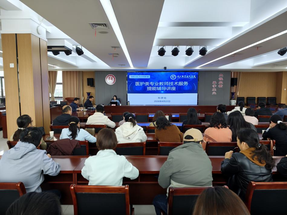(本网讯 胡世港 薛帅)为深入推进学校技术服务提能行动,助力实现2027年职业本科创建目标,切实提升医护类专业教师技术服务与科研创新能力,4月22日下午,我校2026年第1期科研沙龙——医护类专业教师技术服务提能辅导讲座在南图新楼601会议室顺利举行。学校医护类专业教师100余人参会,讲座由科研处副处长熊元焕主持。