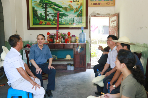 随后,蔡诗红一行先后来到刘又保、倪继烈、倪笃恭家,向他们表示慰问。看到洪水淹过的村子,一片狼藉,大家心情异常沉重。蔡诗红鼓励村民树立信心,积极生产自救,并叮嘱驻村工作队及村干部,对受灾严重、家庭困难的群众,要重点帮扶,要帮他们清理房屋,想办法帮他们添置必备生活家具,帮他们尽快恢复正常生活。