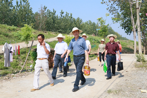 8月14日,学校党委书记蔡诗红、副书记张勇、校长助理田寿永一行9人冒着高温酷暑,赴汉川市垌塚镇涂北村看望慰问受灾返家群众,并为受灾群众送去米、油、药等物资,鼓励大家树立信心,凝心聚力重建美好家园。党委组织部、党委宣传部、图书馆、创业学院、附属医院等部门相关负责人及工作人员陪同慰问。