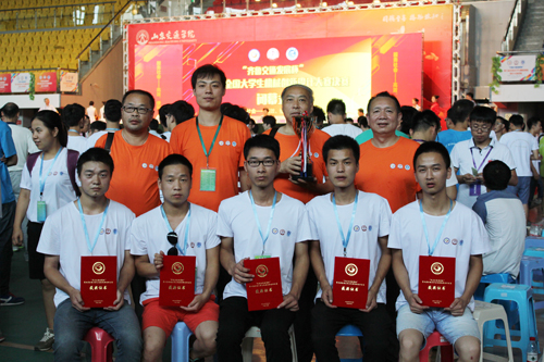 流金七月,捷报频传。7月26日—29日,“齐鲁交通发展杯” 第七届全国大学生机械创新设计大赛决赛在济南举行。经过审阅设计资料、观摩实物演示和进行作品答辩等程序,由机电工程学院朱志强、郭和伟老师指导,肖立昌、黄轩、李金涛、倪志强、王新胜学生组队参与设计的“钱币自动化分拣包装计数辨伪一体机”因创新性、新颖性、实用性突出,且科技含量高、功能强大、性价比高等绝对优势获得评审团一致好评,免复评直接进入决赛而荣获一等奖。校长朱虹亲临现场指导大赛,并为参赛选手鼓劲加油。