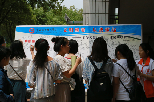 5月30日中午,为扎实推进全国文明单位的创建工作,学校后勤服务中心组织开展了“文明就餐 从我做起”启动仪式,活动在东区、西区食堂、美食广场同时进行。学校党委副书记张勇,学工处、后勤处、后勤服务中心相关负责人以及师生代表们踊跃参加签名等活动。
