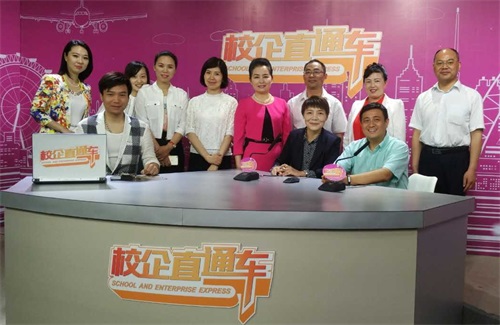 5月6日上午11:40至12:20黄金时段,学校校长朱虹、艺术与传媒学院院长陈红、美容学院院长熊蕊,以及社会用人单位马荣国际幼教集团华中地区总监周益如、武汉美丽椰岛美容有限公司人事部总监金妮,学校2011届毕业生代表谭之平等嘉宾受省电视台垄上频道“校企直通车”直播节目组邀请,就学校办学特色和人才培养模式接受了现场采访、直播。