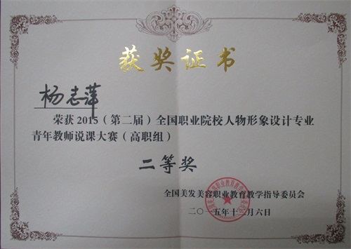 12月5日,全国职业院校人物形象设计专业青年教师说课大赛在上海市第二轻工业学校举行,我校美容学院青年教师杨志萍、梁超兰参加了本次大赛高职组的决赛,分别荣获二等奖、三等奖。