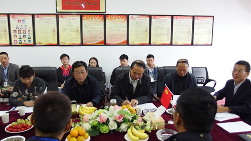 在充分听取了泰森建设集团董事长刘志岩、总经理李建华、实习生代表周辰辉等的意见和建议后,蔡书记对泰森建设集团给予学校工作的大力支持表示感谢,对校企合作创造的良好局面和取得的突出成效给予充分肯定,希望建筑技术学院进一步增强服务企业的能力,进一步发挥校企联合党支部的桥梁和纽带作用,紧紧围绕“四合作”,进一步扩大校企合作的空间和范围,在互利共赢中把校企合作育人引向深入,把学生顶岗实习做实做细,为学校的校企合作创造经验,树立标杆。