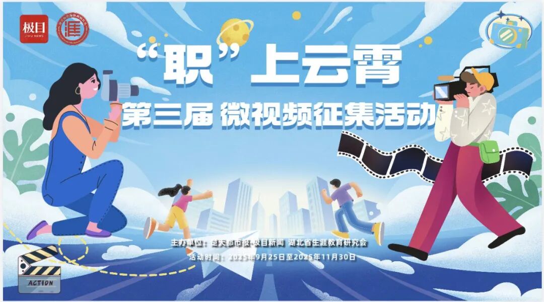 为更好地展示湖北职业教育特色、宣传新时代大学生的职业素养和岗位胜任力,2025年第三届湖北省“职上云霄”微视频征集活动,继续面向各职业院校师生征集微视频作品。