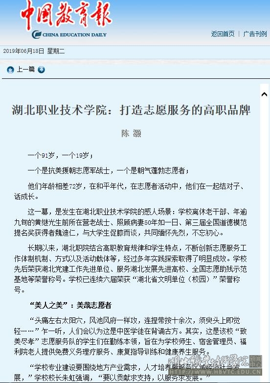 长期以来,湖北职院结合高职教育规律和学生特点,不断创新志愿服务工作体制机制、方式以及活动载体等,经过多年实践探索取得了明显成效。学校先后荣获湖北党建工作先进单位、服务湖北发展先进高校、全国志愿助残示范基地等荣誉称号。学校已连续六届荣获“湖北省文明单位(校园)”荣誉称号。