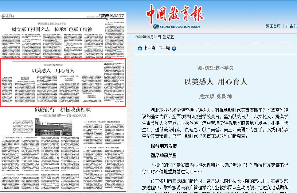 湖北职业技术学院坚持立德树人,将推动新时代美育实践作为“双高”建设的基本内容,全面加强和改进学校美育,坚持以美育人、以文化人,提高学生审美和人文素养。学校旅游与酒店管理学院秉承“服务地方发展,扎根时代生活,遵循美育特点”的理念,以“美誉、美玉、美语”为抓手,弘扬和传承中华美育精神,书写了新时代“美育在湖职”的新篇章。