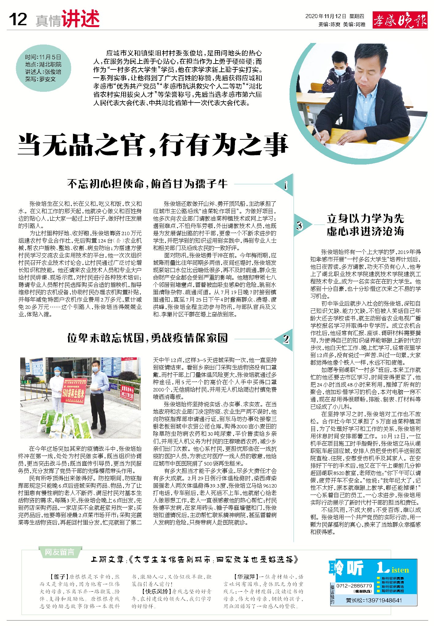 【孝感晚报】当无品之官 行有为之事
