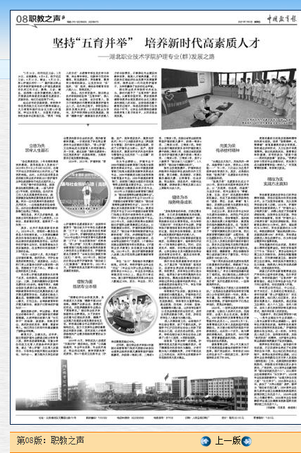 因此,在办学实践中,湖北职业技术学院始终坚持“五育并举”,深入推进全员、全过程、全方位育人,致力于培养新时代需要的高素质护理专业人才。在办学过程中,学校坚持以服务发展为宗旨,以促进就业为导向,走产学研用结合的发展道路,按照“健康中国”健康服务技术技能人才的目标要求,不断深化专业建设和教学改革,提高人才培养质量,不仅在服务区域经济社会发展中发挥重要作用,培养出的一代代优秀护理学子,为学校赢得了良好的社会声誉。
