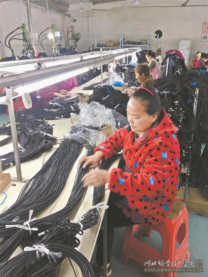 大悟县吕王镇大悟众富电子有限公司的负责人蔡荣华,也是湖北职业技术学院“一村多名大学生”项目的学生。她的厂里,用的都是家里的留守妇女——妈妈或者奶奶们,可以自由地去接送孩子。周末,还可以带着孩子来上班,车间外面,有几间专门给孩子们学习、游戏的教室。