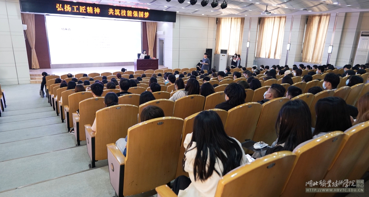 正在与青年学生进行交流的正是2022年全国五一劳动奖章的获得者杨晶,她也是2002届湖北职业技术学院的优秀校友。报告会上,杨晶围绕“弘扬新时代的工匠精神”主题,向大家分享了自己的奋斗历程,并深刻阐述了工匠精神的内涵、意义,以及个人如何培养工匠精神等。杨晶号召广大同学们认真学习,艰苦奋斗,注重细节,用“笨功夫”练就“真本事”。