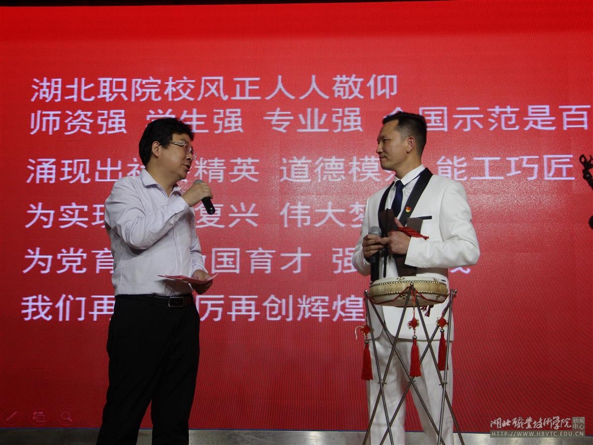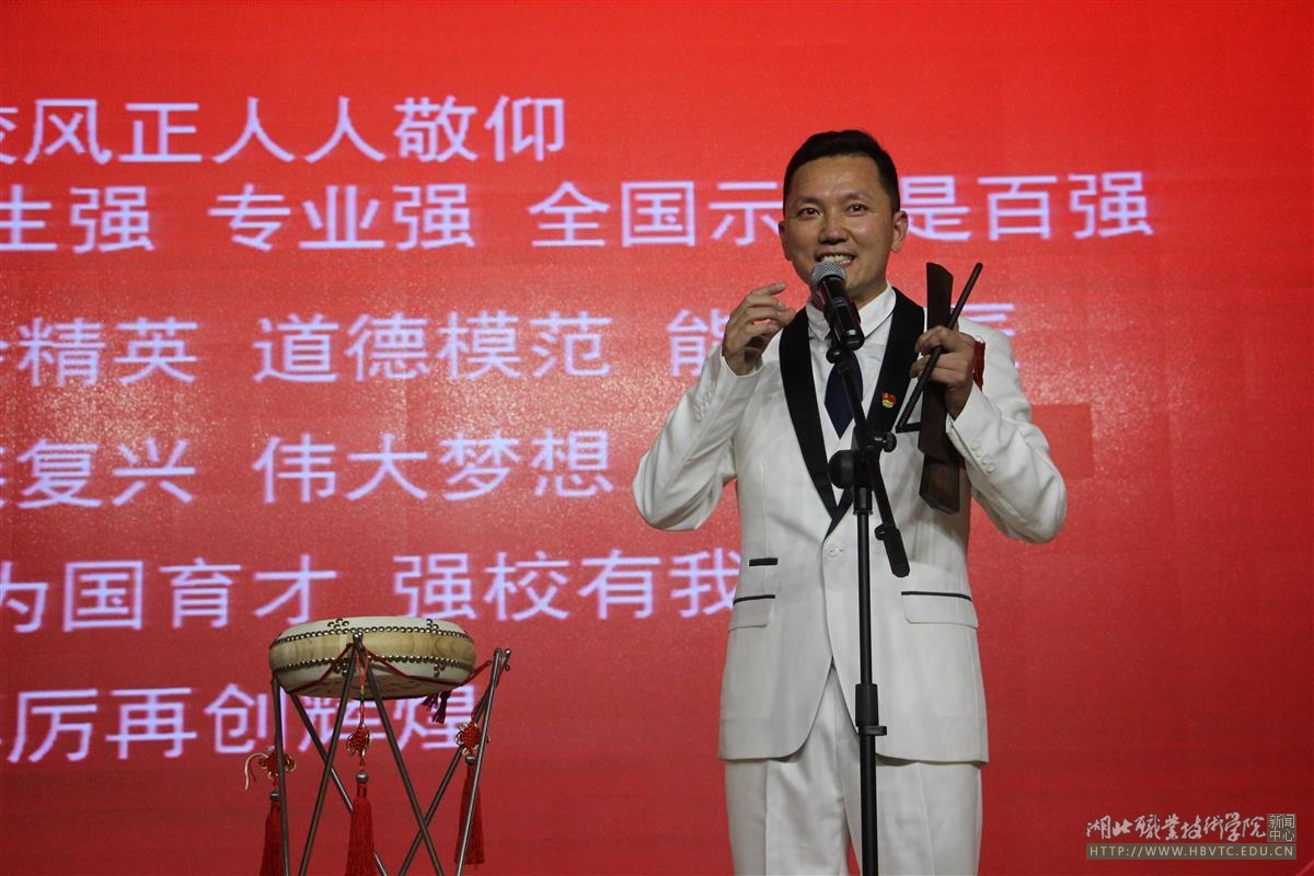 当日,学校特邀云梦县楚剧团青年演员、“湖北鼓王”张明智关门弟子陈加平参加非遗文化艺术展演活动。陈加平为师生们登台表演了川剧变脸、演唱了原创湖北大鼓《湖职防疫信心强》。