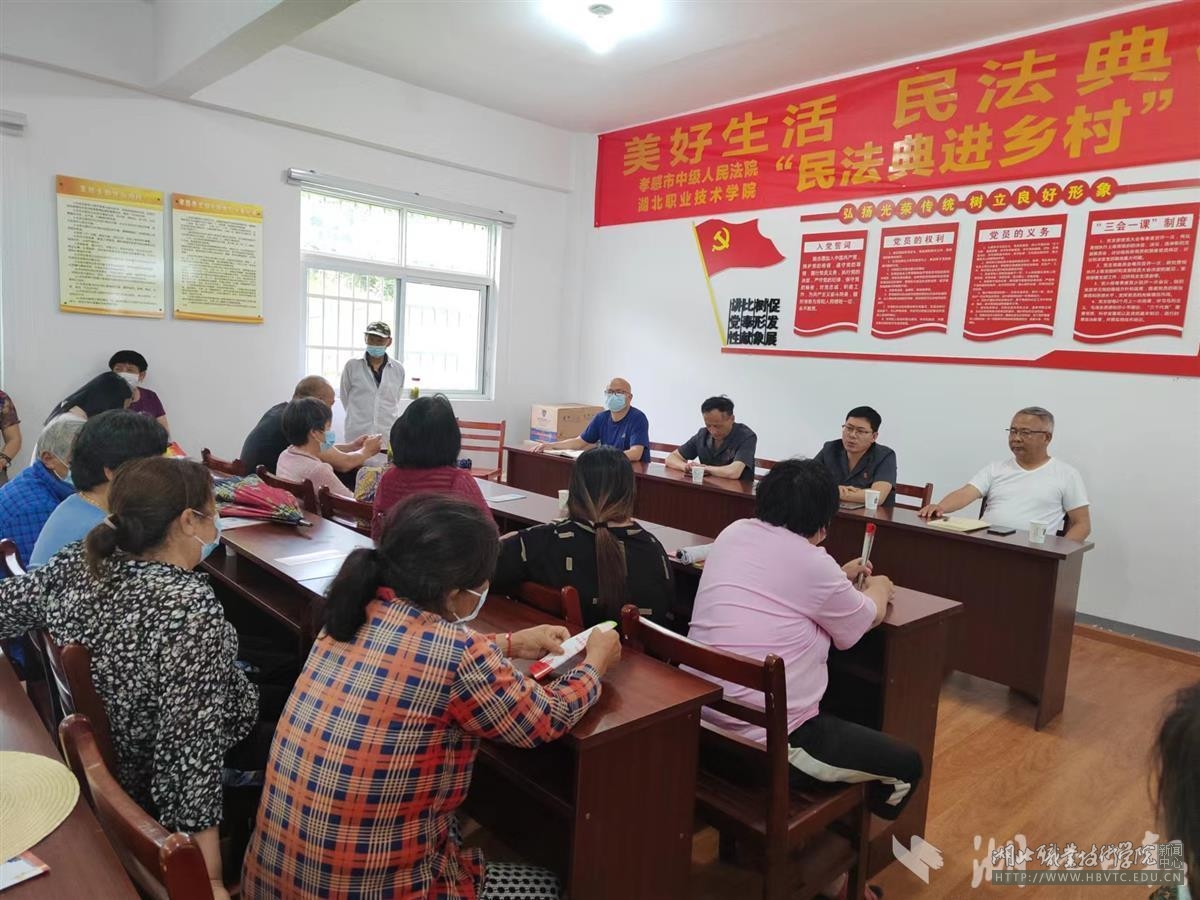 湖北日报讯(通讯员王虹、刘颖)5月30日,孝感市中级人民法院、湖北职业技术学院到孝昌县小悟乡万冲村联合开展以“美好生活·民法典相伴”为主题的民法典宣讲活动。