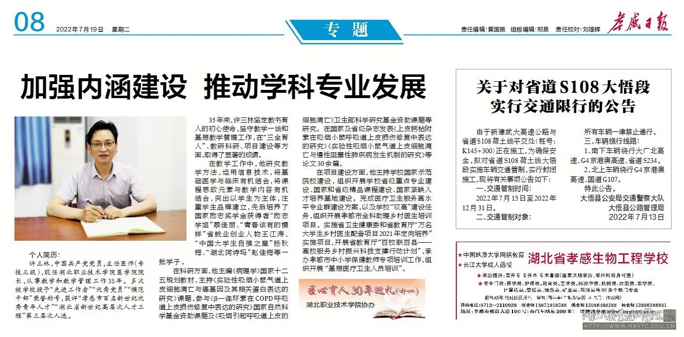 在项目建设方面,主持学校国家示范院校建设,组织开展学校省级重点专业建设、国家和省级精品课程建设和国家紧缺人才培养基地建设。完成医疗卫生服务高水平专业群建设方案,以及学校“双高”建设任务,组织开展孝感市全科助理乡村医生培训项目,实施省卫生健康委和省教育厅“万名大学生乡村医生配备项目2021年定向培养”实施项目,开展省教育厅“百校联百县——高校服务乡村振兴科技支撑行动计划”;承办了孝感市中小学保健教师专项培训工作,组织开展 “基层医疗卫生人员培训”,服务区域卫生事业。