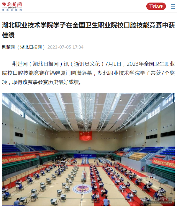 荆楚网(湖北日报网)讯(通讯员文花)7月1日,2023年全国卫生职业院校口腔技能竞赛在福建厦门圆满落幕,湖北职业技术学院学子共获7个奖项,取得该赛事参赛历史最好成绩。