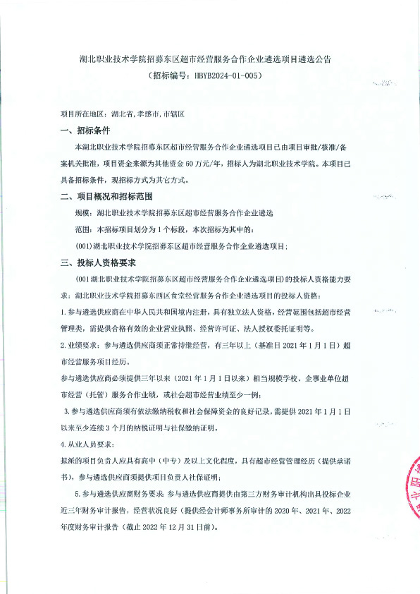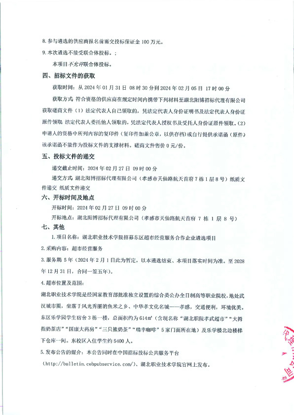 湖北职业技术学院招募东区超市经营服务合作企业遴选项目遴选公告