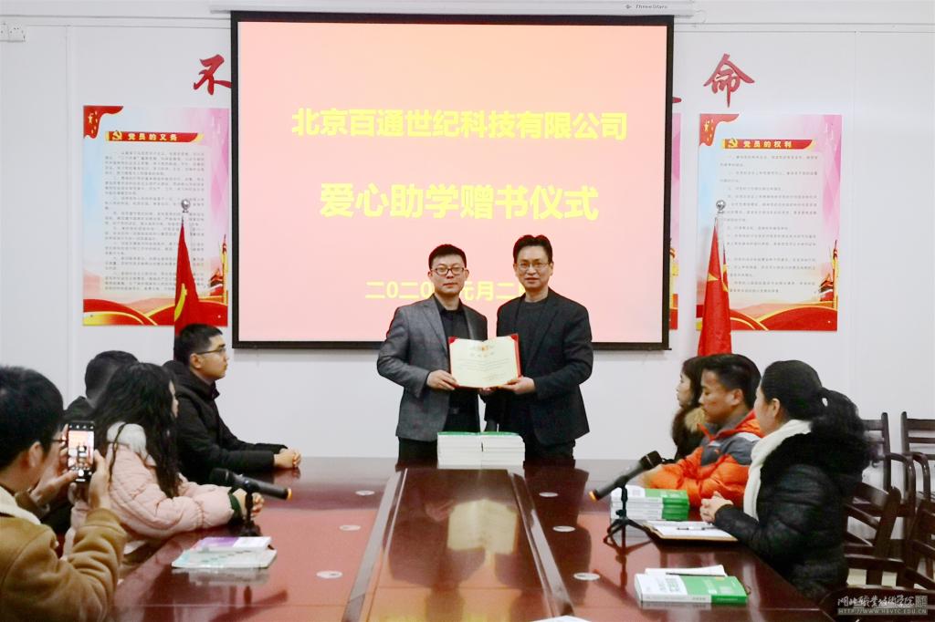 1月2日,北京百通世纪科技有限公司爱心助学赠书仪式在立新楼党员活动室举行,医学院院长许三林、副院长张舟、陈军芳、临床医学专业负责人岳新荣、临床医学专业2018级学生代表参加了座谈会。会议由副院长陈军芳主持。