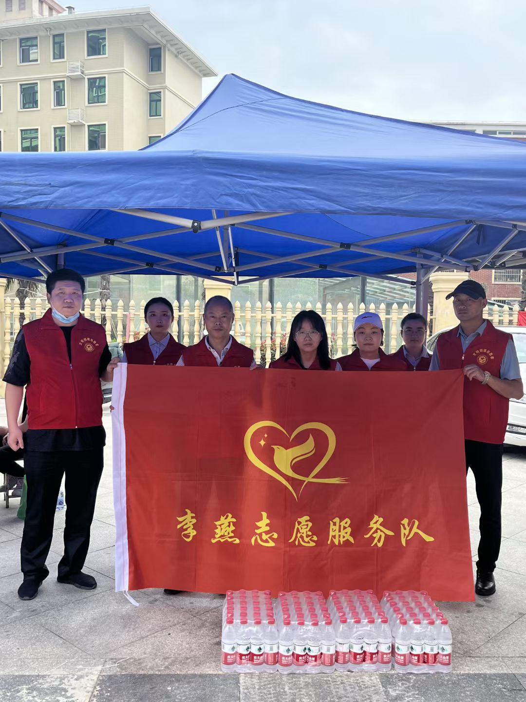 (李燕(前排左四)团队孝南区广场街道大院社区开展志愿服务活动)