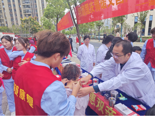 志愿者们来到社区广场布置服务台,带来了血压计、血糖仪、艾灸条、火罐等专业设备。居民们闻讯纷纷前来,在志愿者引导下有序接受各项服务。在基础健康检测区,志愿者们认真为每位居民测量血压、血糖并记录数据,针对数值偏高的居民,耐心询问日常用药情况,细致讲解注意事项。康复理疗区尤为受欢迎,志愿者们运用所学专业知识,为居民提供艾灸、推拿按摩、拔火罐等传统中医服务,有效缓解了居民常见的颈肩腰腿疼痛问题。活动现场,志愿者们还特意设置了健康咨询台,为居民解答各类健康疑问,提供个性化的康复指导建议。