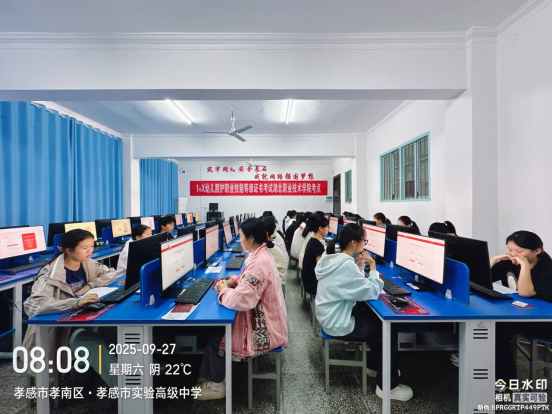 考核当日,考场分为理论考核区和技能操作区。理论考试为理论答题,于科技楼315机房和317机房进行,在理论考场中,学生们沉着冷静,认真作答,展现了扎实的专业知识基础。实操考试为技能操作,于实训楼302进行,在技能操作考场中,考生们则需要依次完成婴幼儿日常照料、应急处理、早期发展活动指导等多个实操项目。他们操作规范、动作娴熟、充满爱心,充分体现了学院学生优秀的职业素养和娴熟的实践技能。整个考试过程,监考教师和考评员恪尽职守,严谨公正,确保了考核的权威性与公平性。
