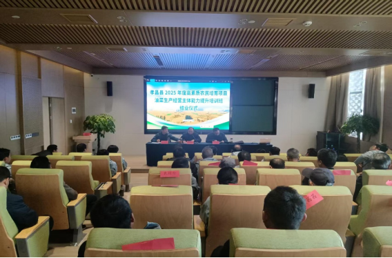 (本网讯 刘壮)11 月 24 日,由孝昌县农业农村局主办、湖北职业技术学院承办的“孝昌县 2025 年度高素质农民培育项目油菜生产经营主体能力提升培训班”结业典礼在孝昌县农夫子教育培训基地举行。孝昌县农广校校长、农业农村局科教股主任李文书、医学院党总支书记高想清、副院长王光耀及69名学员参加结业典礼。结业典礼由王光耀主持。