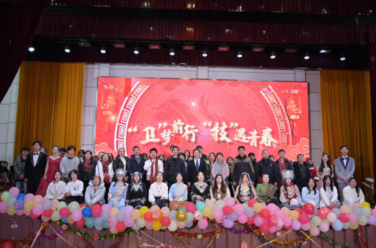晚会精心设计“溯光·传承初心”、“绽放·砺行青春”、“拾阶·致远未来”三大篇章,融合舞蹈、歌曲、情景剧、走秀、小品、合唱等多种艺术形式,生动展现卫技师生昂扬向上的精神风貌与家国情怀。