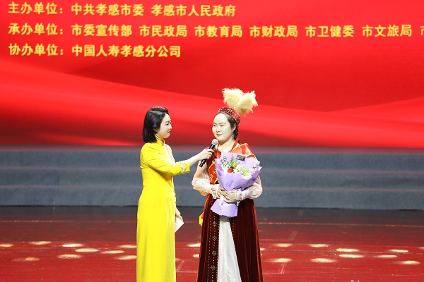 湖北职院机电工程学院2023级学生、石榴红志愿服务队副主席、荆楚石榴红宣讲团成员、石榴红•孝廉谷文化基地讲解员阿依舒阿克·金格斯荣膺孝感市第十四届“十大孝子”。湖北职院荆楚石榴红艺术团表演的节目《美丽中国》压轴登场,“湖职元素”燃爆全场,学校服务中华孝文化名城建设的支撑力、贡献度进一步彰显。